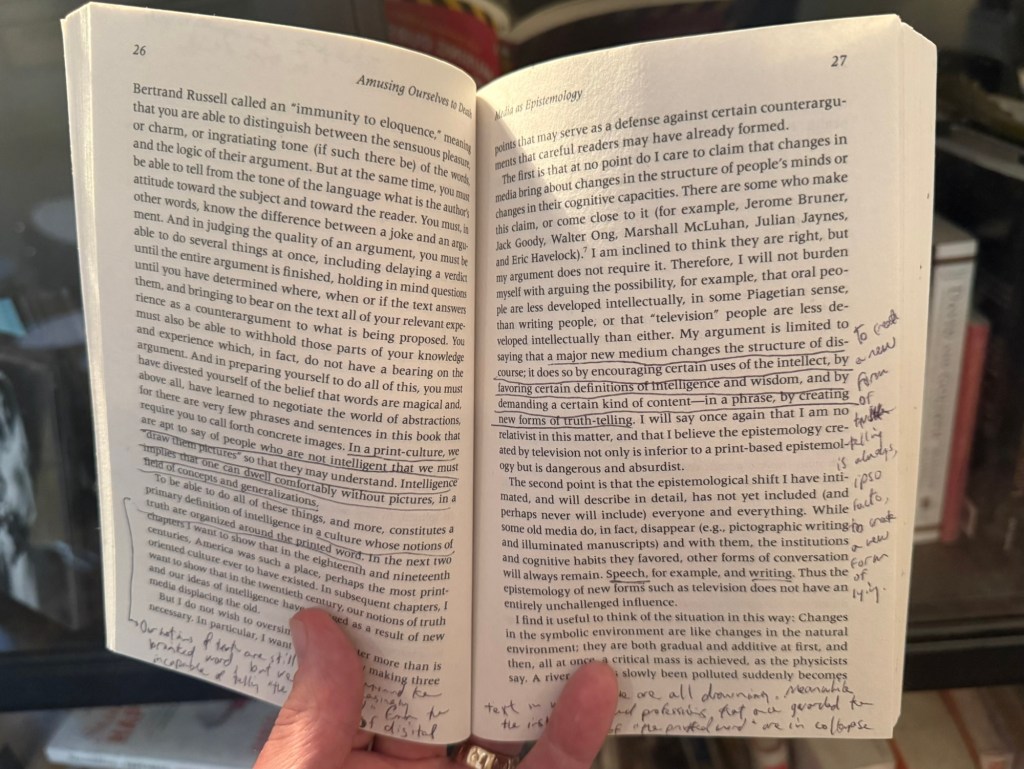 I underline. I make notes in the margins. I scribble summaries at the ends of chapters and on blank pages. I draw (terrible) diagrams trying to connect ideas.